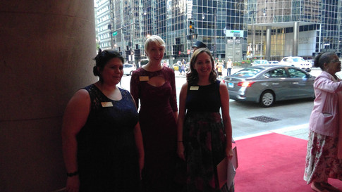 Right: Terri Van Valkinburg (Assistant Principal Viola), Teresa Fream (violin), and Amy Hess (viola) crash the red carpet